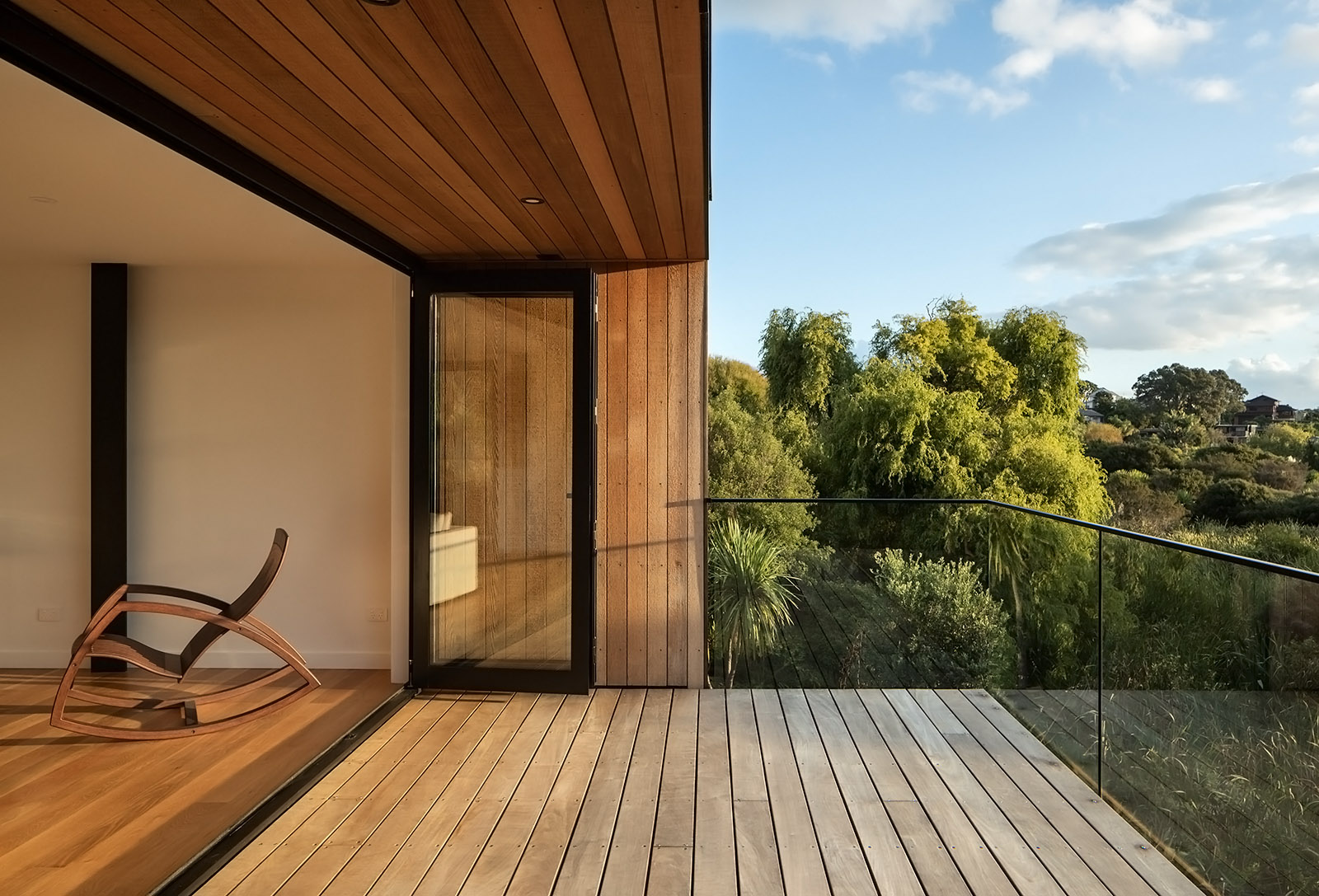 Contrasting tones of timber cladding reference the vegetation of the surrounding reserve and wetland areas and emphasise the playful shapes of the design. The carefully considered metal cladding provides a crisp, contemporary aesthetic.